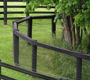 There are many different types of wire fence. The main type at least for horse farms would be Vmesh fence, or 2X4 knotted wire with either a oak board or even Centaur on the top. Wire fence can be curved, and not fall over in a year, but only if its done correctly. Wire fence cost is also on the rise since the market for steel and scrap steel is getting very expensive. Wire fence is very strong and will give you a lifetime of use but is really not good to have around tree lines or along a road. When the first ice storm knocks all those limbs onto your wire fence it will it will demolish it. Cars running through it doesn’t help much either. Another place that wire is not a good choice is in flood zones since any debris will be caught in the wire and can push the fence over.
